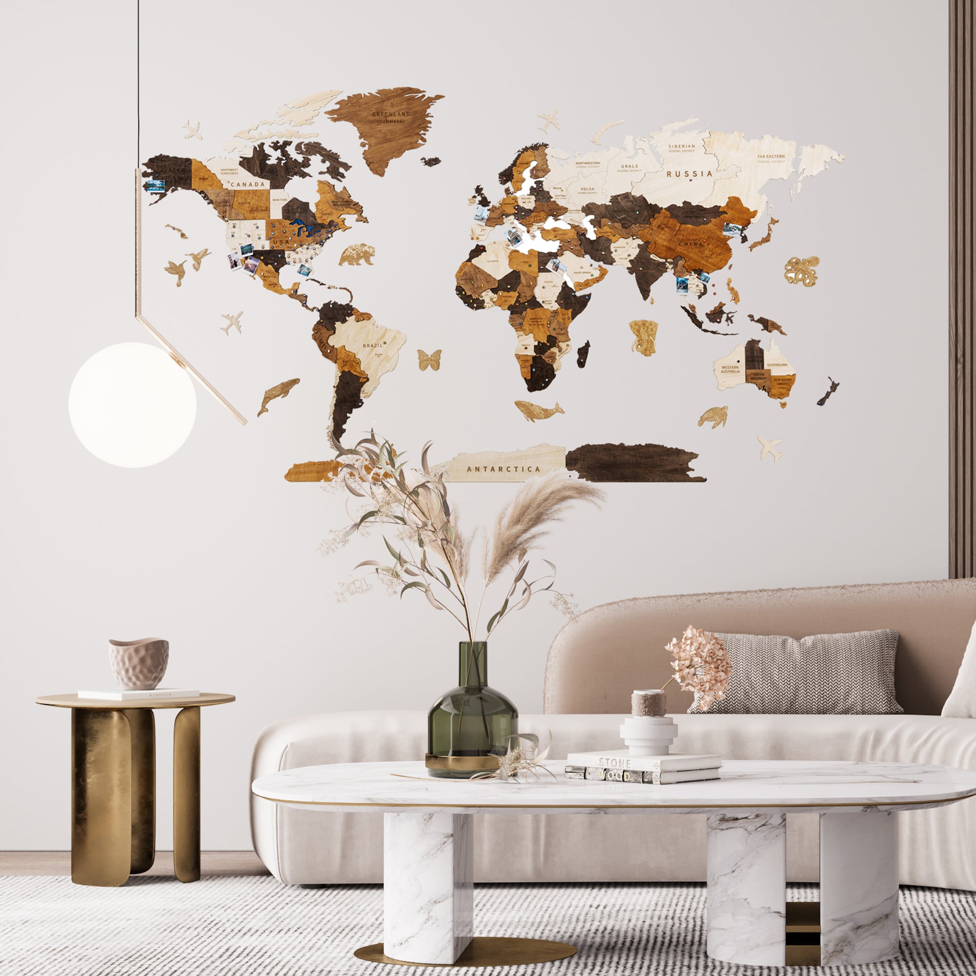 3D Wooden World Map with push pins Living room